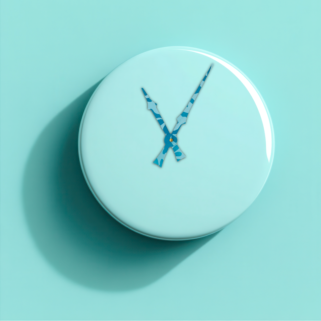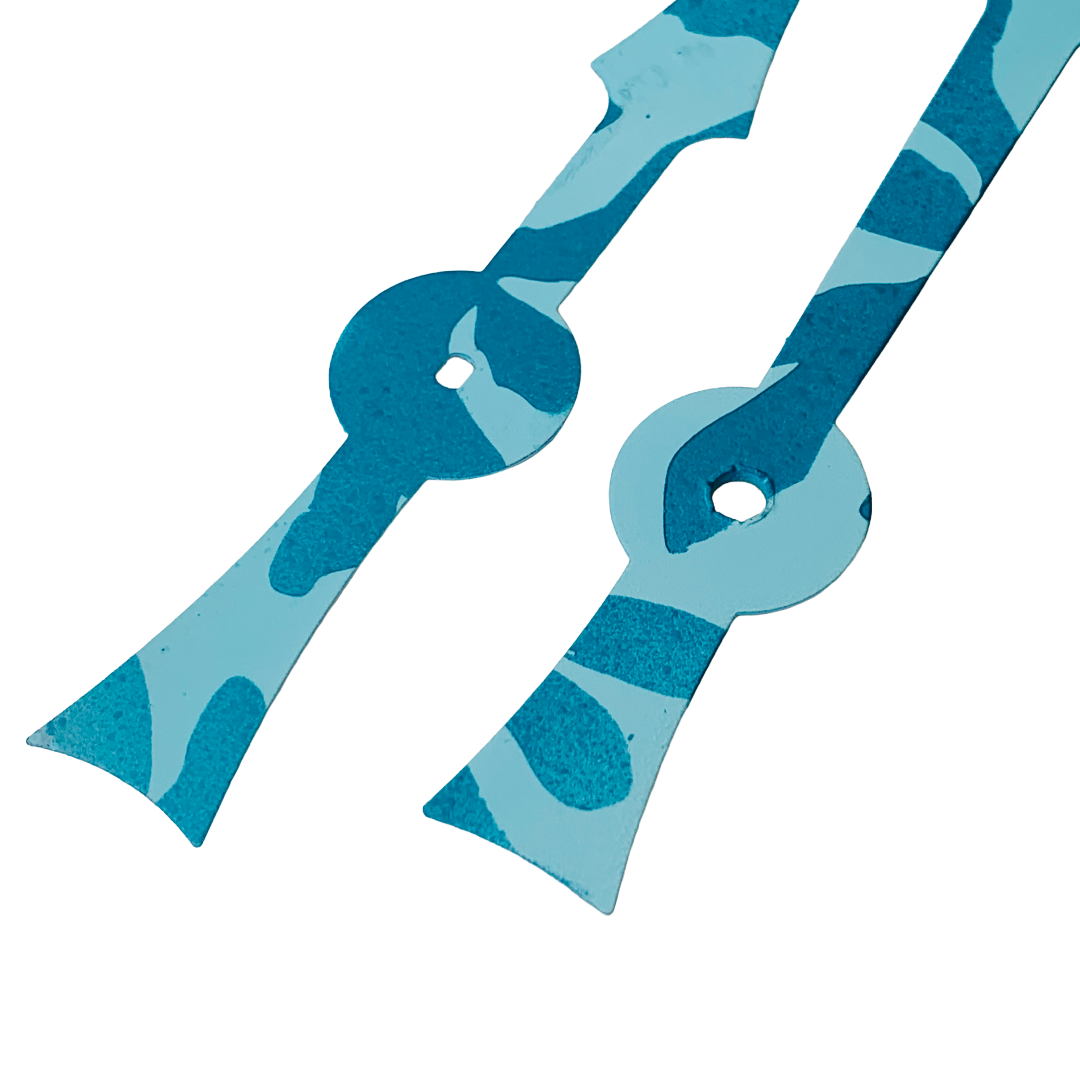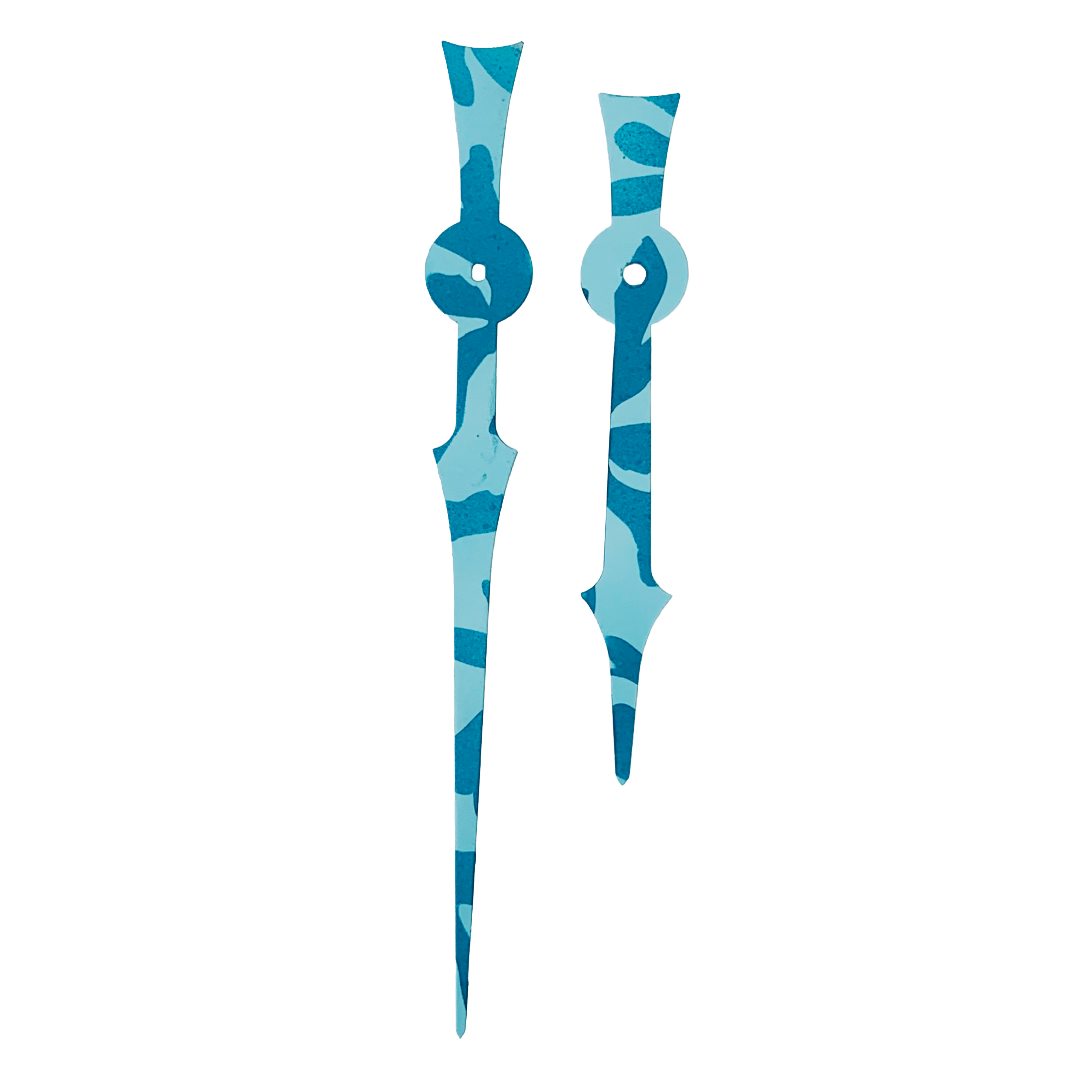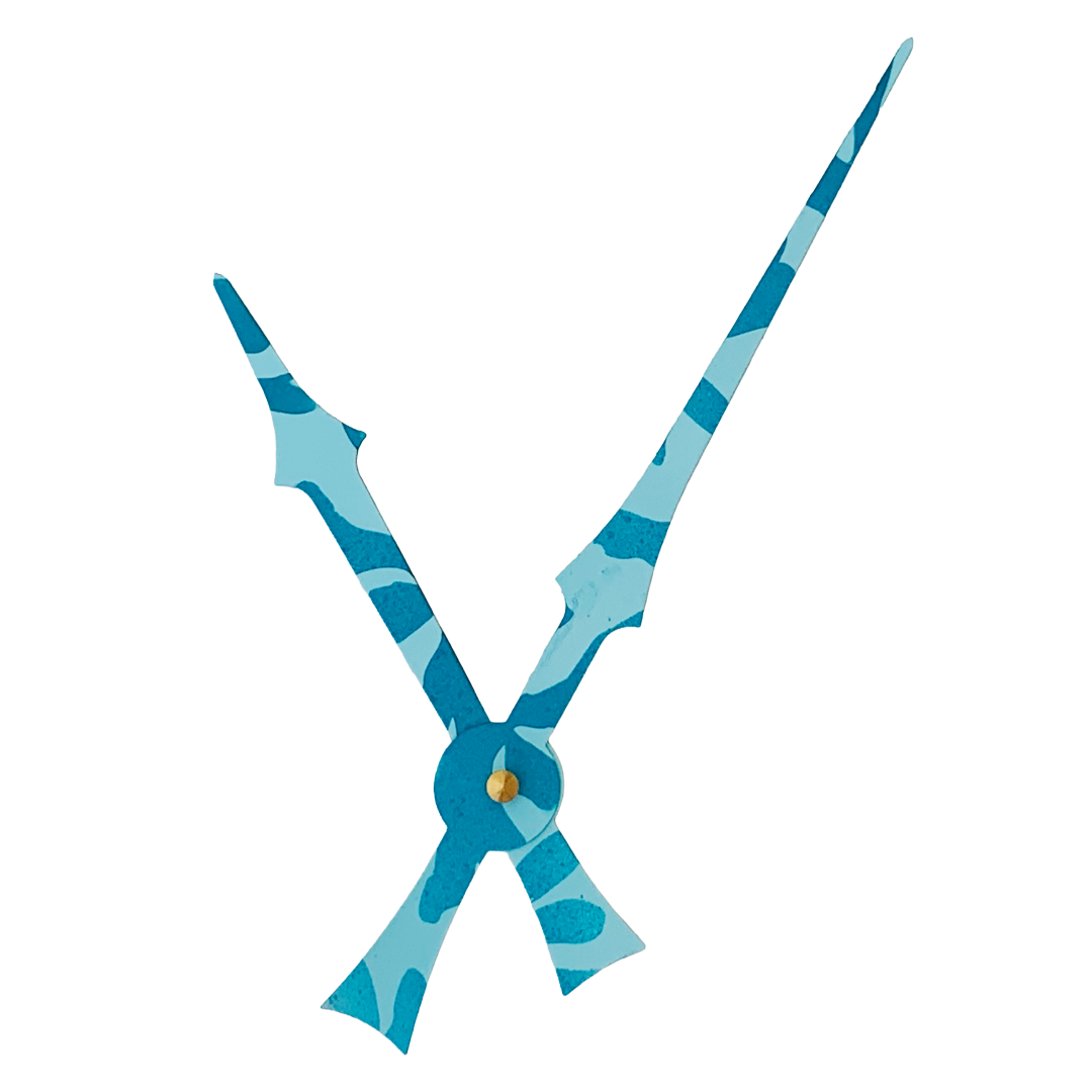 Each pair of clock hands is hand-painted by me, making every set unique. This style is called Bora Bora—a vibrant tropical print inspired by the turquoise and deep sea blues of island waters. The layered tones capture the essence of ocean horizons, bringing a breezy, exotic feel to your clock. If you don’t see the color or style you need, just message me for a custom creation.