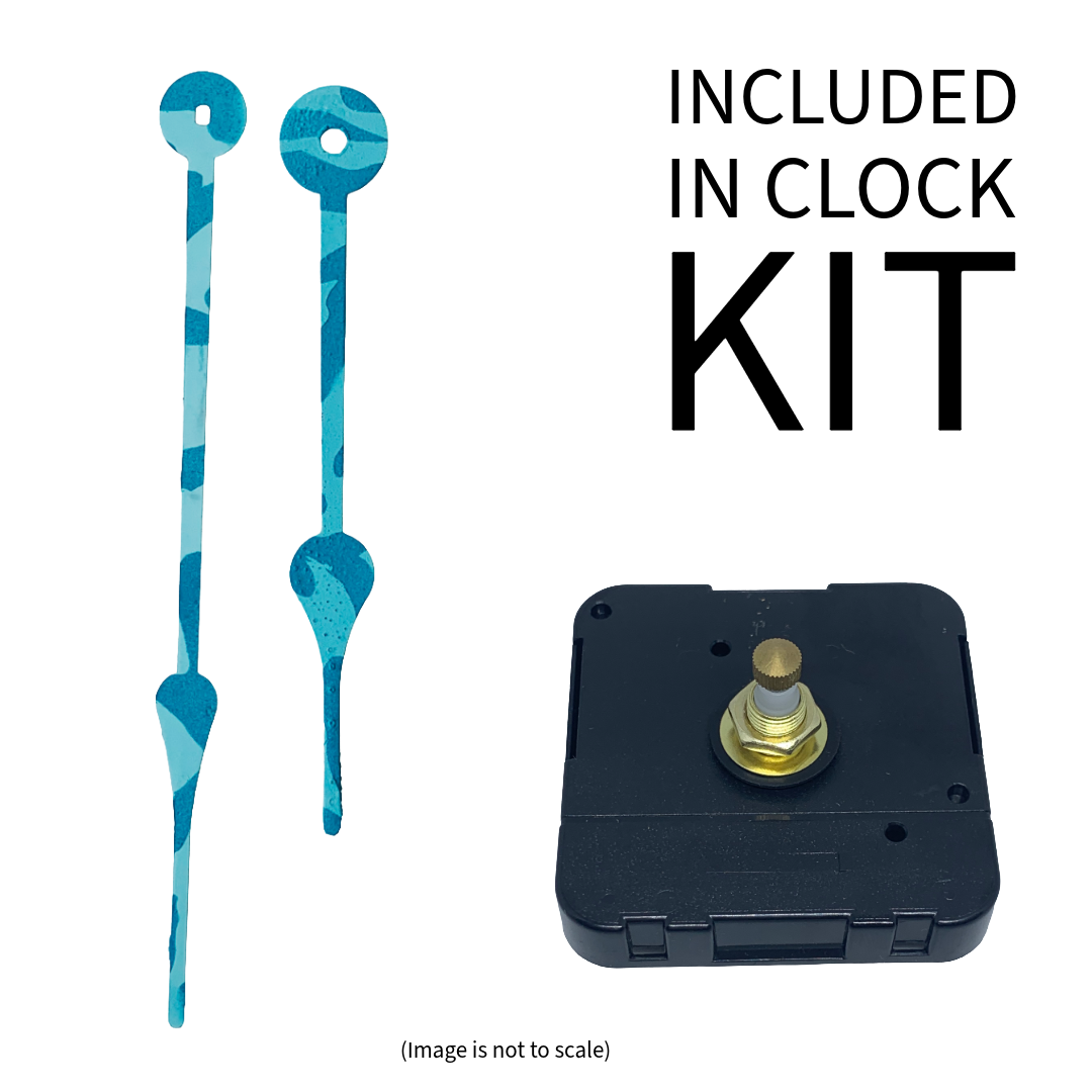 This kit includes custom-painted hands and a quartz movement—everything you need to build your own clock (except the dial/face). Once assembled, it makes a finished clock about 14"–15" (356–381 mm) in size—ideal for larger wall clocks that bring bold coastal energy into your home.