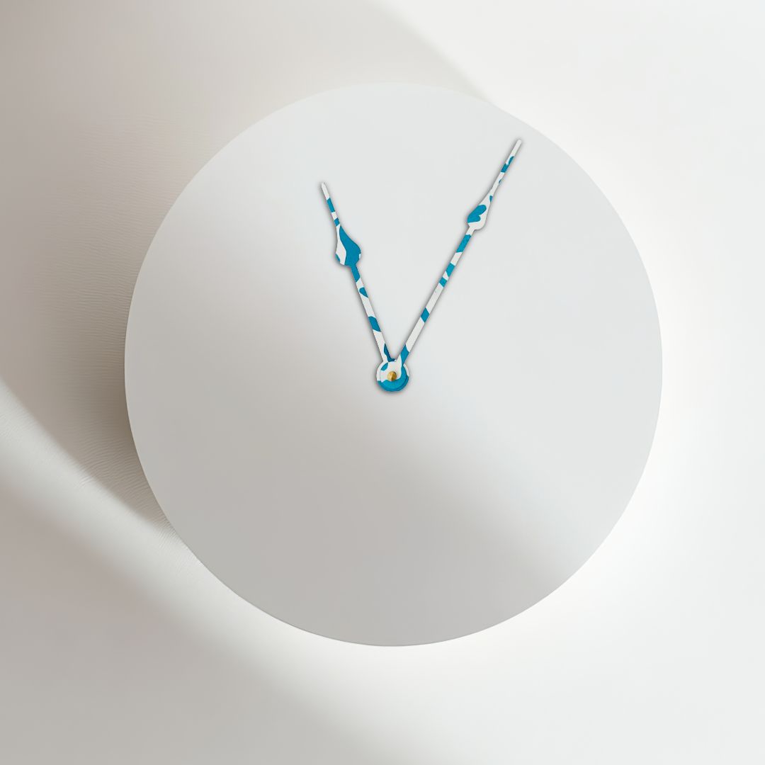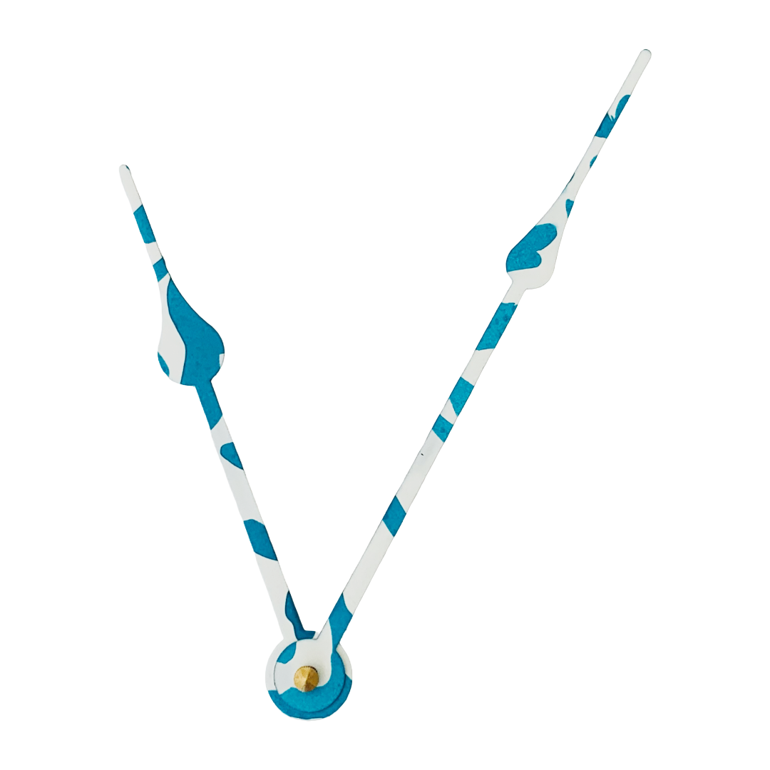 Each pair of clock hands is hand-painted by me, making every set unique. This style is called Coral Drift—an aqua-water blue and white tropical print that brings a fresh, coastal-inspired feel to your clock. If you don’t see the color or style you need, just message me for a custom creation.