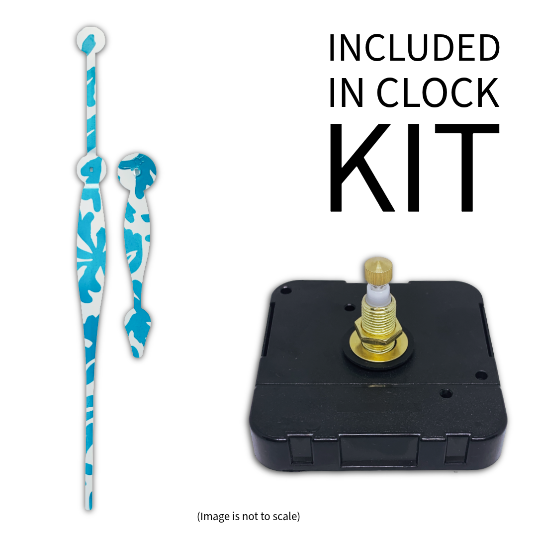 Coral Drift Clock Kit – Hand-Painted Aqua Blue & White Tropical Print Hands – Makes an 18"–19" Clock